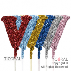 Adorno de telgopor. Es un pinche con la letra V, decorada con gibre. Pack de 6 unidades. Ideal para decoración de tortas, centros de mesa o mesas de souvenirs en cumpleaños infantiles. - telgopor - - letras con gibre