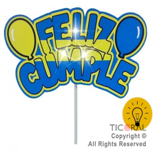 ADORNO PINCHE PARA TORTA FELIZ CUMPLE CON LUZ BOCA x 1