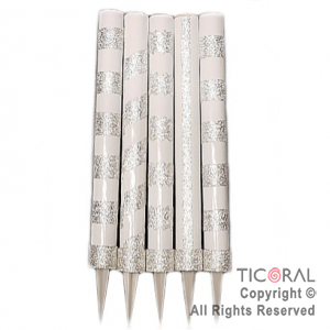 BENGALA A RAYAS CON BRILLO BLANCO Y PLATEADO X 5