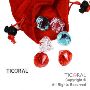 Bolsita con piedritas que imitan a los diamantes en color tranparente y de colores, contiene 6 en una bolsita de color rojo con cordon para guardarlas adentro. Ideales para tandas temáticas de Halloween o de piratas, como regalito de final de cumple o juguete, como accesorio para disfraces, carnavales carioca o cumpleaños.