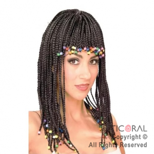 Peluca bahiana. Es una peluca corta de muchas mini trenzas con mostacillas de varios colores en las terminaciones. Color: castaño. Posee una red para sujetar el cabello. Estos tipos de pelucas son de muy buena calidad y cubren toda la cabeza. Se pueden utilizar por varias horas, ya que son muy cómodas. Ideales para el carnaval carioca, como accesorios para disfraces, en tandas temáticas, cumpleaños y en todo tipo de festejos. Se pueden realizar tandas temáticas de pelucas, de los años 60, de reggae,bahiana o tanda disco. -