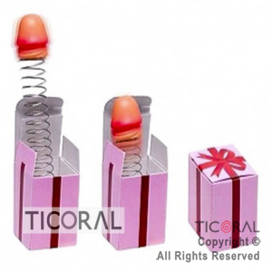 Es una cajita con sorpresa, tiene adentro un mini pene que salta con un resorte para afuera de la cajita. Chasco de sexo recomendable para despedidas de soltero o soltera. -