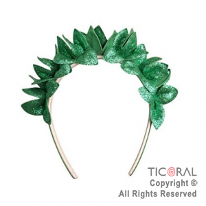 Es una vincha con diseño de hojas en forma de corona del personaje de Lilo. Material: plástico y goma eva. Se utiliza en el carnaval carioca, en fiestas y tandas temáticas, regalo de fin de fiestas infantiles, como accesorio para disfraces o en todo tipo de festejos.