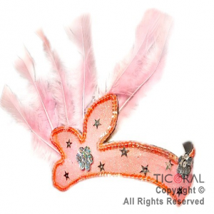 Corona con plumas. Tiene la base decorada con brillo, gibre, piedras de color y lentejuelas. La parte superior con plumas en color rosa. Ideales para carnavales carioca, tandas temáticas, disfraces, cumpleaños, fiestas o comparsas de carnaval. Estos tipos de tocados son ideales para las homenajeadas, para destacarse del resto de los invitados.