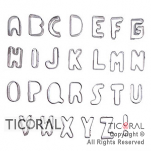 Cortante con forma de abecedario. Material: hojalata. Los cortantes son herramientas ideales para repostería, ya que permiten realizar decoraciones o crear diferentes diseños. Se utilizan sobre todo tipo de masas como pastillaje, fondant, pastas de goma, mazapán, etc. o en porcelana fría.