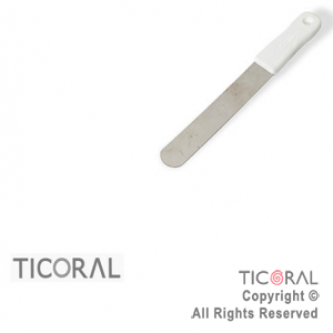 Espátula de acero inoxidable con mango de plástico. Medida: 29 cm. Es un utensilio de repostería que se utiliza como herramienta para facilitar la cobertura de tortas, por ejemplo. Hay diferentes tamaños.