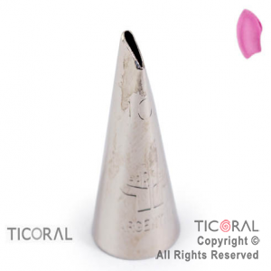Boquilla con forma de pétalo de flor Nª8. Material: acero inoxidable. Medida: 3 cm. aprox. Pack de 6 unidades. Se utiliza junto con una manga de repostería y una cupla. Las boquillas son ideales para hacer decoraciones profesionales de pastelería en tortas, galletitas, cupcakes, bombones, adornos en azúcar o tartas.