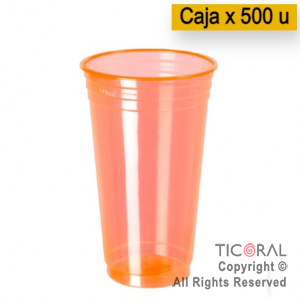 VASO NEON FLUO 300CC NARANJA COPOBRAS x 500 unidades (20 paq x 25 unidades)