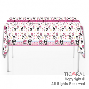 Mantel descartable con diseño de "Kuromi". Material: plástico. Medidas: 180 cm. x 120 cm. rectangular. Es ideal para las mesas de un cumpleaños o festejo infantil. Puede combinarse con otros productos de la misma línea.