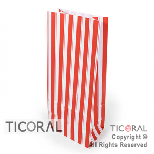 BOLSITA PAPEL BLANCA A RAYAS ROJA 12.5X24.5CM x 10