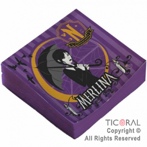 Servilletas de "Merlina". Material: papel. Medida: 17 cm. x 17 cm. Pack de 20 servilletas de papel. Son ideales para las mesas de un cumpleaños o festejo infantil. Pueden combinarse con otros productos de la línea "Merlina".